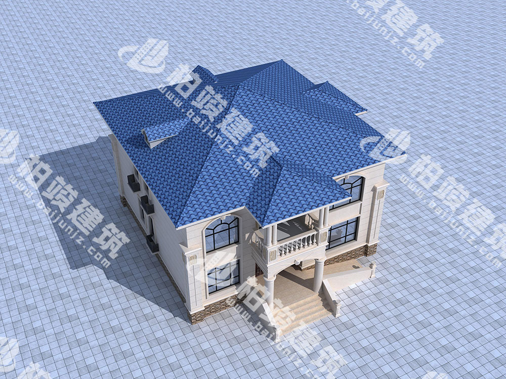 屋頂造型:藍色釉面瓷瓦鋪設(shè)坡形屋頂,飽滿色澤如碧波流淌