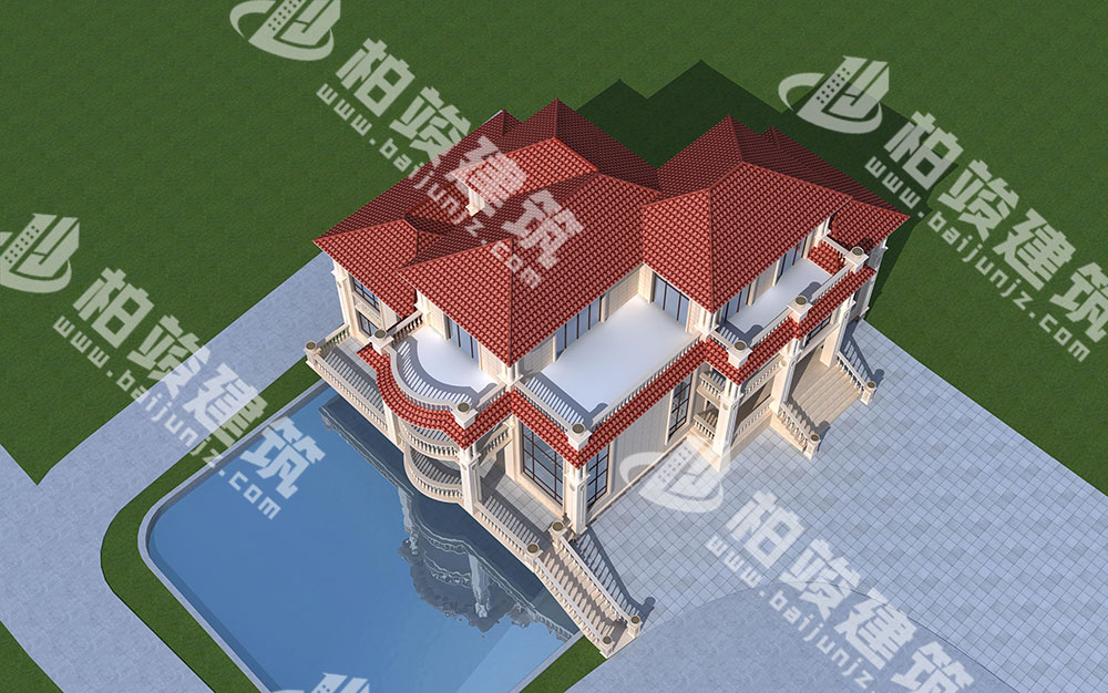 外墻裝飾:多層花瓶型護(hù)欄,搭配簡(jiǎn)約羅馬柱、歐式花盆、浮雕,繁簡(jiǎn)相間,視覺(jué)效果豐富不雜糅