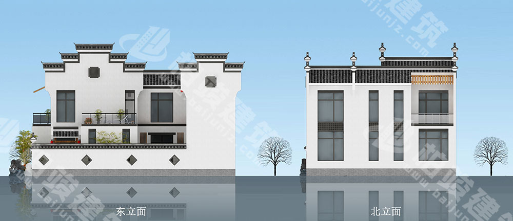 山墻設(shè)計(jì):三檐山墻設(shè)計(jì),造型大氣古樸,有官帽之形,寓意步步高升